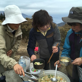 帰路の電車で今回の楽しい山行を振り返って、こんなに素晴らし企画をして下さった幹事の方々には感謝と、見本にしないといけないな、という気持ちが沸き上がりました。しずくさん、とんぼさん、お腹の様な大きな鍋やたくさんの具材を準備し運んでくださった皆様、本当にありがとうございました。 (すーさん記)